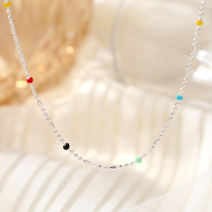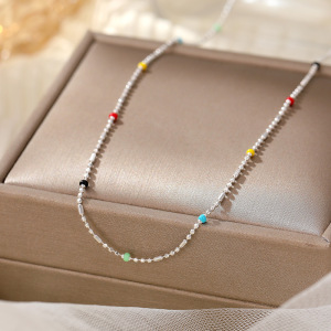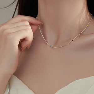 Rongshu の下 S925 シルバーインターネット有名人ドーパミンカラーネックレス女性 ins 韓国版ヨーロッパとアメリカのスタックスタイル鎖骨チェーンアクセサリー