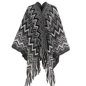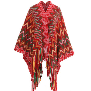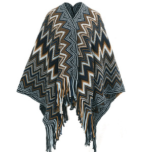 秋冬新作ニットストールクロスボーダー現物卸売フリンジマント波ストライプカラー開叉ニット女性