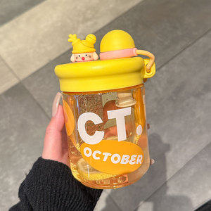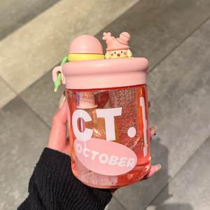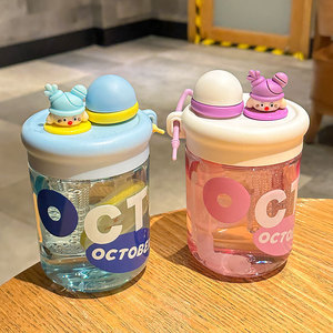 大容量公仔茶倉杯アニメかわいい水筒小清新シンプル運動プラスチックカップストロー飲水カップ