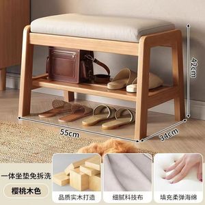 【上新】玄関に入る木の靴交換腰掛け家庭用シンプルな中国式二重通気ソフトバッグは靴の腰掛けに座ることができます。