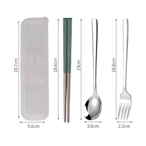 304ステンレス携帯食器セット韓国式スプーンフォーク箸3点セット屋外キャンプ出張旅行食器