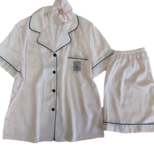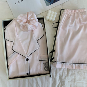 【維米少女】半袖半ズボン夏パジャマ女性ジャカードピンク蝶刺繍ホームウェア雪氷糸薄手