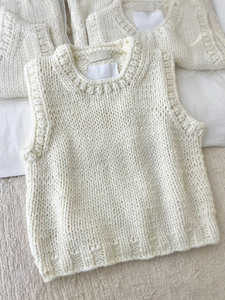 柔らかいモチのレトロな白いニットのベストの女性は秋冬に肩のセーターのベストを重ねて着ます。