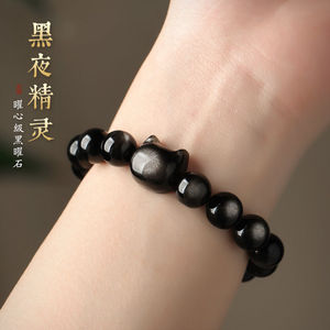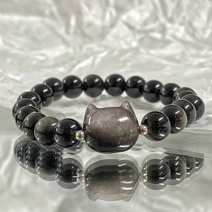 天然の銀曜石の猫の頭の黒曜石のブレスレットの女性の娘の蜜の個性の甘いクールなファッションのカップルのブレスレットの装飾