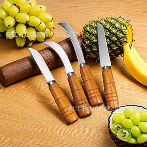 ステンレス製小型カーブナイフ、パイナップルナイフ、フルーツナイフ、ジャックフルーツカッター、スイカカッター、バナナナイフ、ピーリングナイフ、4点セット