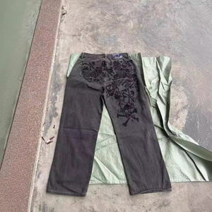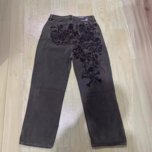国境を越えたメーカー直販欧米のトレンドゴシックヒップホップ風ジーンズ高街水洗い黒灰色ゆるいワイドパンツ