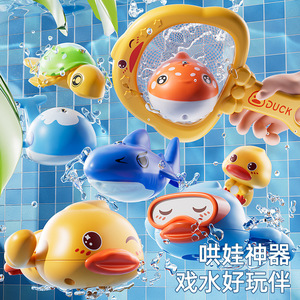 赤ちゃんのお風呂のおもちゃの子供は水を遊びます。