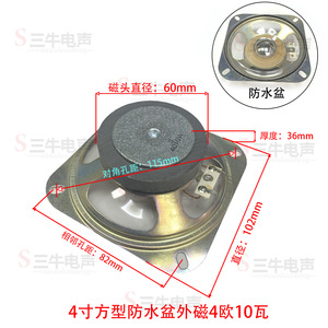 4inch 角バブルエッジペーパーコーン外部マグネット 4 オーム 10 ワット
