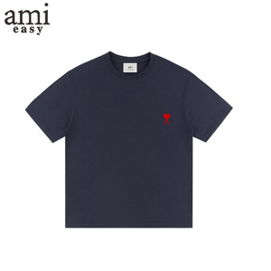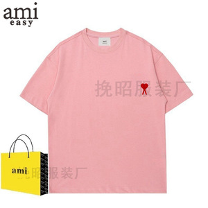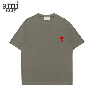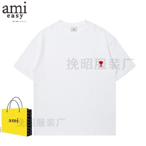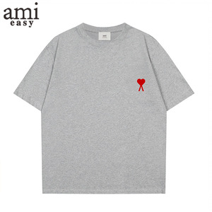 AMI&EASY2025 新しい Tシャツメンズ愛刺繍ルーズオフショルダースリーブ夏のトレンディなファッション半袖トップ