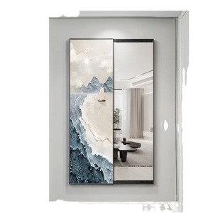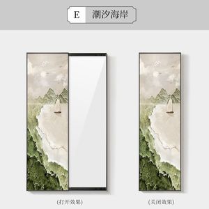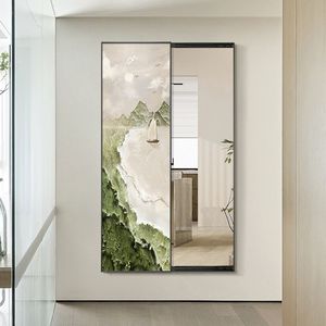 現代のシンプルな玄関は全身鏡を押して装飾画を描きます。寝室は鏡を隠します。