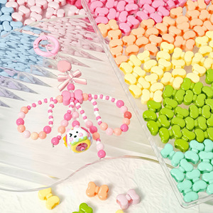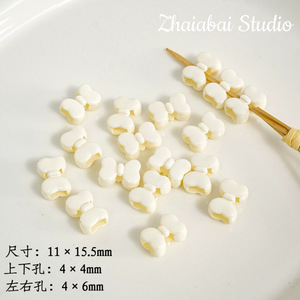 高荷クリーム色焼き漆ちょう結び四通ピアスビーズdiy携帯電話チェーンキーホルダー材料アクセサリー部品