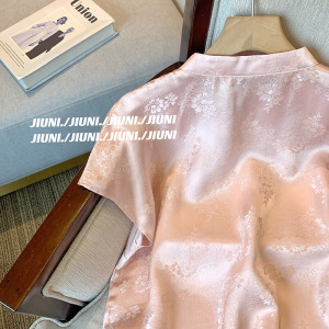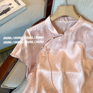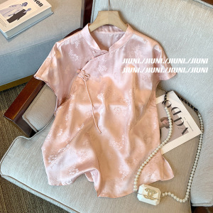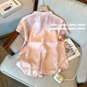 新中国式国風禅意ジャカードサテン半袖シャツ女装2024夏フランス式超きれいなシャツ