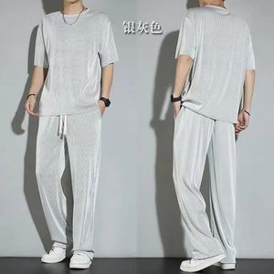 氷糸スポーツスーツ男性夏薄手2024新型カジュアル長ズボン半袖tシャツ速乾服ジャケット