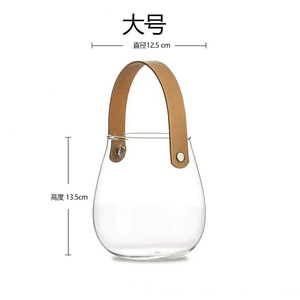 創意皮革手提げガラス生態花瓶杯微景観水培植物花器乾花工芸創意家庭
