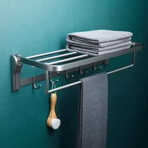 銃グレー折り畳みバスタオルラックトイレ浴室壁掛けタオルラック物置棚ホテル工事用