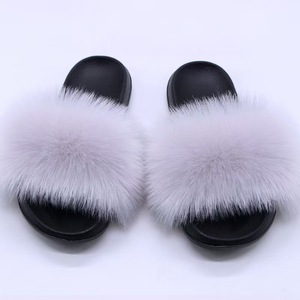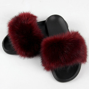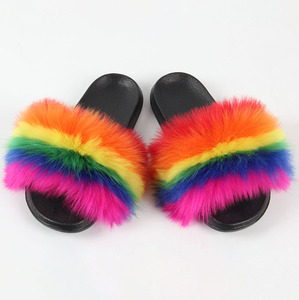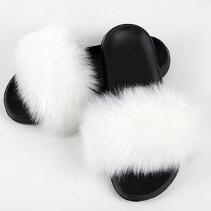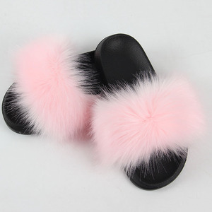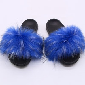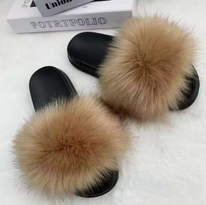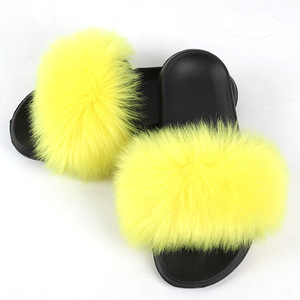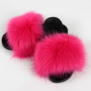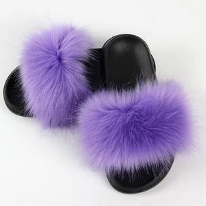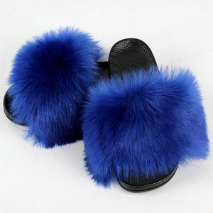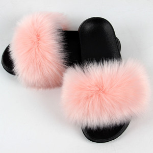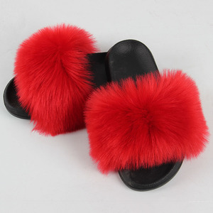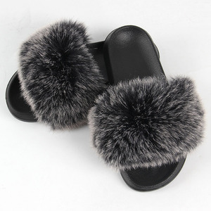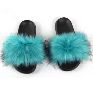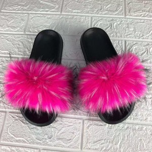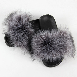 狐の毛のスリッパのファッションの夏の毛のふわふわしている毛皮のスリッパの女性の室内の室外の滑り止めのサンダルの1字のドラッグ