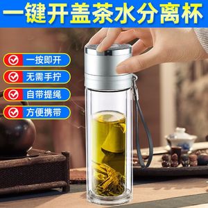 速開カップ茶水分離カップ二重泡カップ一ボタン開蓋グラス車載カップ高颜値カップ