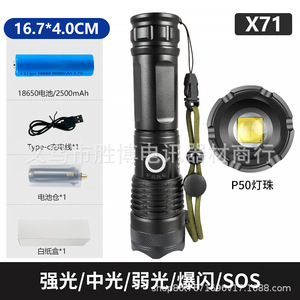 クロスボーダーグレア懐中電灯 P50 伸縮ズームアルミ合金充電式懐中電灯屋外長距離照明 X71