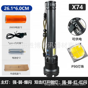 X74p90強力懐中電灯 (2*26650-1800ミリアンペア)