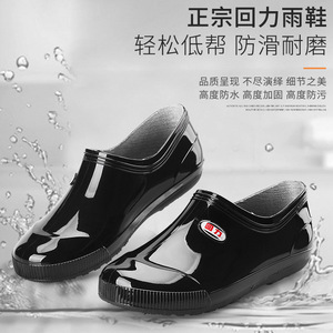 上海回力 メンズレインシューズ 329 防水作業靴 ショート丈 ローカット キッチン用 滑り止め 耐油 厚底