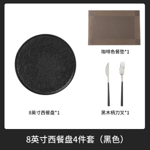 フロスト紋黒-4点セット8インチ洋食皿【ナイフフォーク付き】