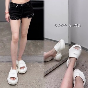 Smfk十字花網紅同タイプのスリッパの女性ビーチの外に松餅の厚い底のハイヒールを着て高くなります。