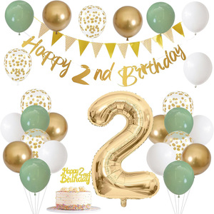 緑の金色の誕生日パーティー18 30 40 50 60 70歳の旗風船挿し数字アルミ箔風船