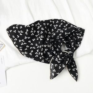 シルクタオルの女性のオリジナルデザインの純綿の小さい方の巾の甘い新型の田園の花のスカーフの薄い通気性の日焼け止めの頭巾