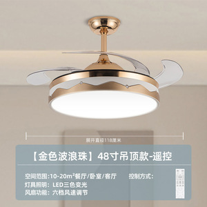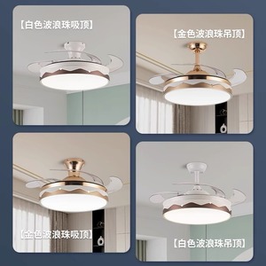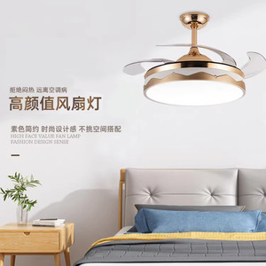 軽奢型インビジブルファンライト リビングホールメインライト 寝室ルームダイニング 静音可変周波数 家庭用シンプルシーリングファンライト