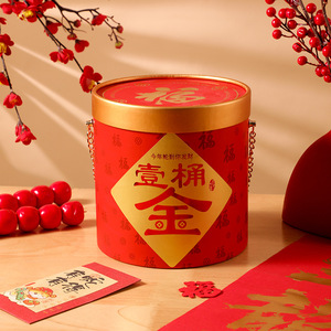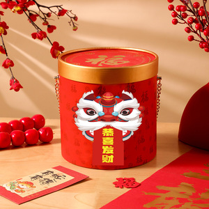新年ギフトボックス手持ち抱っこバケツ年物ナッツスナック円筒プラスチックカバー抱っこ富バケツギフトボックス空箱