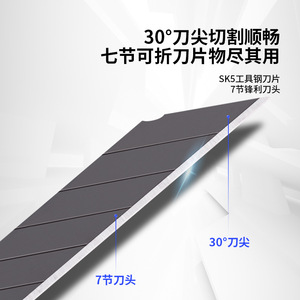 有力美工刀30度トランペット壁紙刀黒刃60度ステンレス裁断紙膜金属刀美術刀
