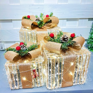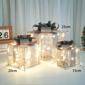 2025クリスマス装飾用工芸クリスマスツリーの雰囲気装飾リボンプレゼント箱三点セット鉄芸置物