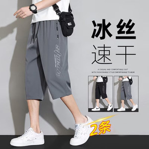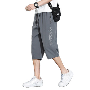男性の夏の薄いタイプの氷の糸の速乾の7分の半ズボンのゆったりしている運動のファスナーのポケットのカジュアルな膝のまっすぐな筒のズボン