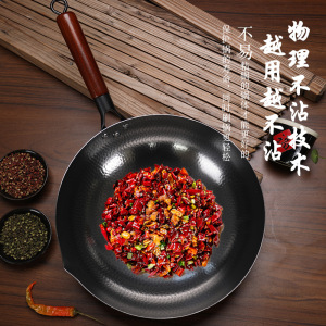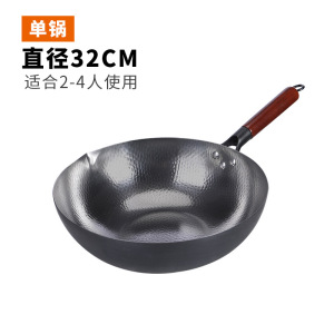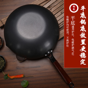鍛造鉄鍋 家庭用 無塗装 平底 ノンスティック 中華鍋 汎用 IH対応 魚鱗模様 炒め鍋