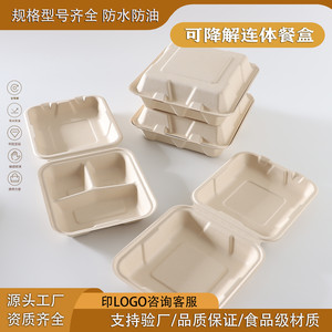 使い捨てパルプ弁当箱サトウキビ連体軽食サラダの出前梱包分格蓋付き分解可能弁当箱