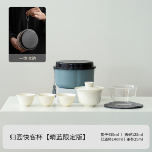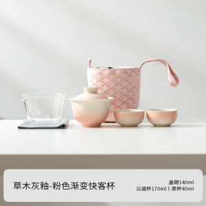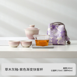 草木灰釉薬グラデーション屋外旅行工夫茶器セット陶磁器蓋碗快客杯一壺二杯携帯バッグ