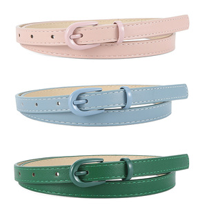 新型クロスボーダーのキャンディー色の細いpu皮の針はベルトの女性の高級感の服の白い組み合わせの種類のズボンのベルトの卸売りを掛けます。