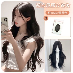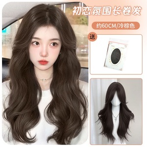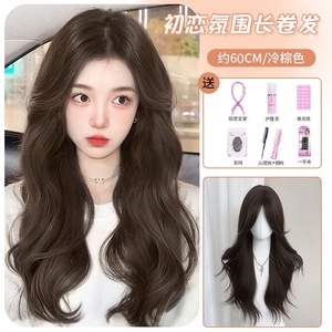 女性用ウィッグ ロングヘア シミュレーションヘア 本物そっくりの前髪付き ロングカールヘア センターパート 大きなウェーブ フルウィッグ 女性用ロングストレートヘア