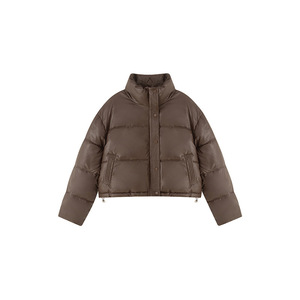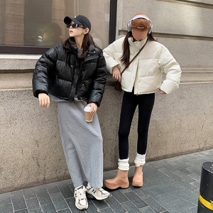 中欧アメリカンスタイルの2024年新作ショート丈ダウンジャケット、小柄な女性向け、スタンドカラーダウンジャケット、PUレザー厚手コットンジャケット、トレンディなコットンコート