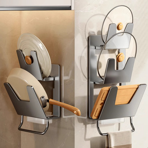 鍋の蓋の棚は穴を開けないで壁掛け式の銃の灰の台所のまな板は鍋の神器の料理のまな板を置いて棚の多機能を置いて収納します。