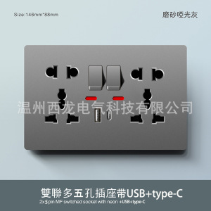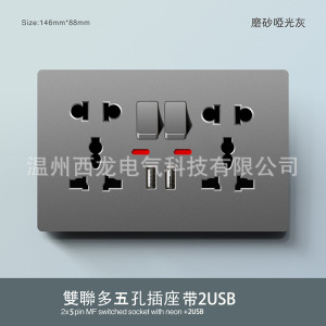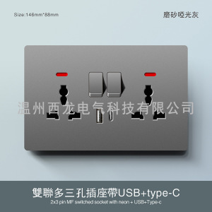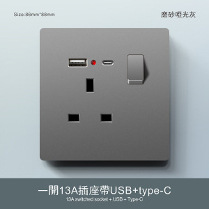 グレー 1 オープン 13A 英国隠蔽プラグタイプ 146 家庭用香港およびマカオバージョンスイッチ超薄型 USB ソケットパネル付き
