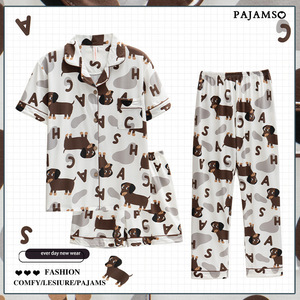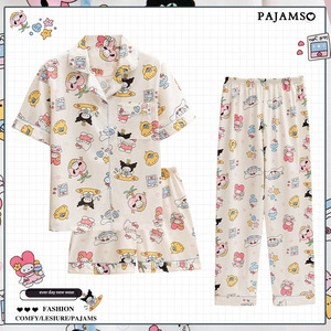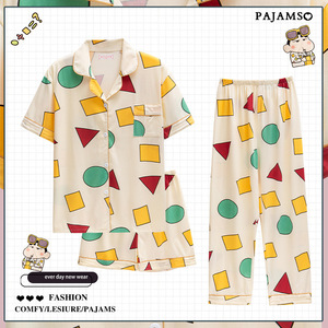 パジャマレディース夏新作半袖長ズボンパジャマ3点セット甘くて可愛い可外着夏ホームウェアセット