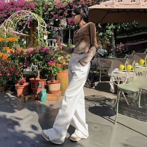 レトロなハイウエストのゆったりしたワイドパンツを郵送します。
