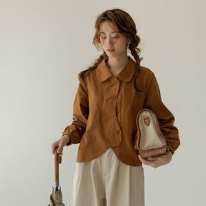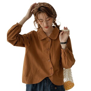 日本式の毛磨きの常規はやせたデザイン感があります。polo襟の上着の女性は朝の秋の襟の長袖の純色、ボタンのシャツです。