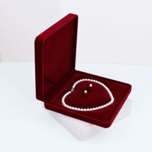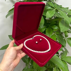 ナツメの赤いハート型の真珠のネックレス + ブレスレットのセット箱; 19*19*4cm