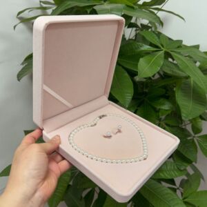ベージュ色 (肌色) ハート型真珠ネックレス + ピアスセット箱19*19*4cm