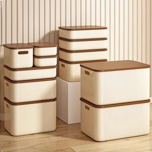 大容量デスクトップ収納ボックス家庭用多機能雑貨収納バスケットins風リビングルームカバー付き厚手収納ボックス
