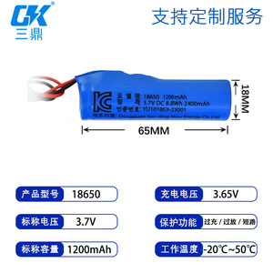 源头厂家18650锂电池 3.7V 1200mAh-加板线强光手电 手持风扇电池