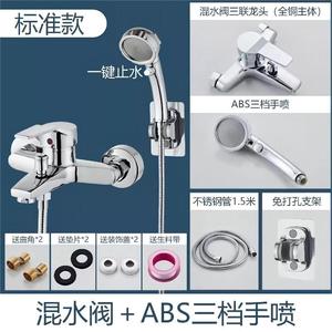 【全銅タイプ】プルアップ式三連シャワー蛇口 + 三段一ボタン止水手スプレーセット-品質保証10年