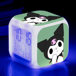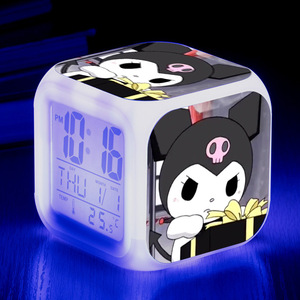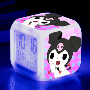 外国貿易の商品の供給源のサンリオの周辺のクールな洛米のled電子の七色の変色の四方の時計の大画面のデジタルの小さい目覚まし時計